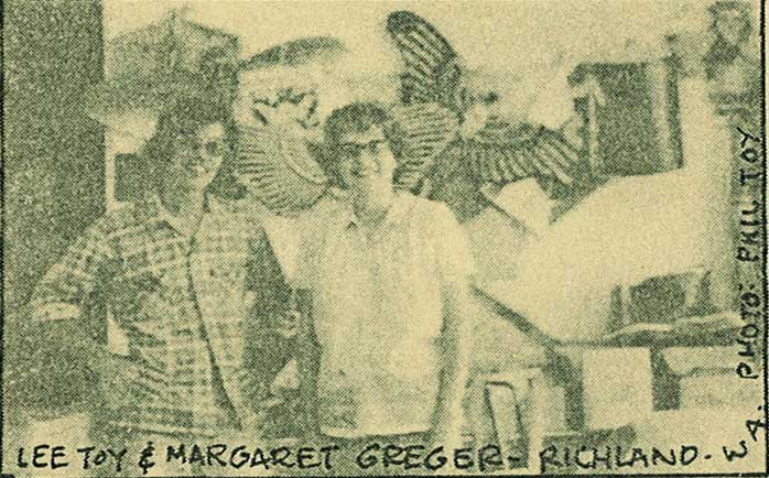 I had brought along my kite photo album and we had a great time looking over each others photos and sharing delta kite stories. After we had visited for a while, Hod asked if I would like to meet Mrs. Walter Scott. We called her up and soon the discussion turned into a session of the Taylors and Mrs. Scott telling wonderful stories of how they used to fly with Ben Blinn and on and on, until I felt as if I didn’t really need to go back to San Francisco.