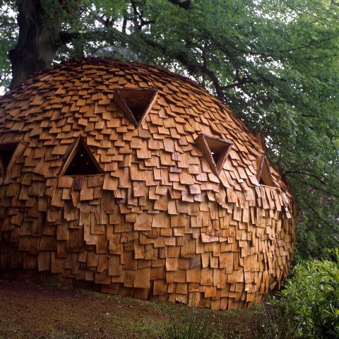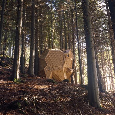 For the last four years their base has been Arthog, a village in Wales. The Morisons have acquired a forest there, which they are transforming into an arboretum by introducing non-native trees collected on their travels. The arboretum is home as well to structures that suggest, variously, garden follies as imagined by hippie science fiction fans, or primitive earthen shelters. This project is at the core of their far flung projects, including their Open Satellite residency.