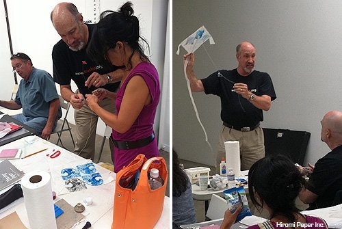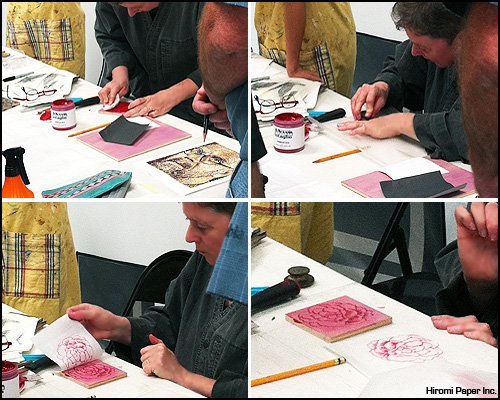 On the afternoon of Sunday, September 11th Hiromi Paper International had their much anticipated drypoint woodblock and kite making workshop. This workshop was in collaboration with the Drachen Foundation and Christine Yuengling, who taught the drypoint woodblock technique. Scott Skinner also assisted with the workshop.