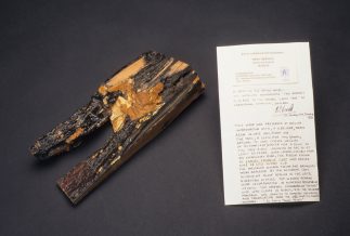 Fragment from 'Cody's Tree' at Farnborough. Pine tree. Vacuum preserved and coated with resin 1953, 1954. This tree became a monument at the Royal Aircraft Establishment at Farnborough to Cody's pioneering work: when the tree itself died, it was replaced by a reproduction on a plinth.