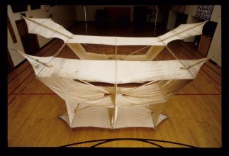 Modified extended wing Cody kite. Believed to be constructed by Vivian Cody Cloth and bamboo. Purchased at Cody Family Auction, item is LOT 217.