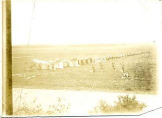 Royal Engineers kite team, some in shirt sleeves, with a very large assembly of kites (about 20),. including black kites with white edge banding. Note the winch on a gun carriage and wicker kite seat and the 'cube' kite basket being displayed. See also 001, 417, 579, 595, 702. 595 is best image for images of assembly process. Same as 311, 435, 522, 578, 593, 690 (593 best image). Group including 001, 153, 155, 311, 417, 435, 449, 468, 522, 542, 574, 578, 579, 584, 593, 594, 595, 604, 690, 702, 735 brings images of the British Army kite equipment, kite assembly and some kites on the ground where the army are not using recognised army specific kites.
