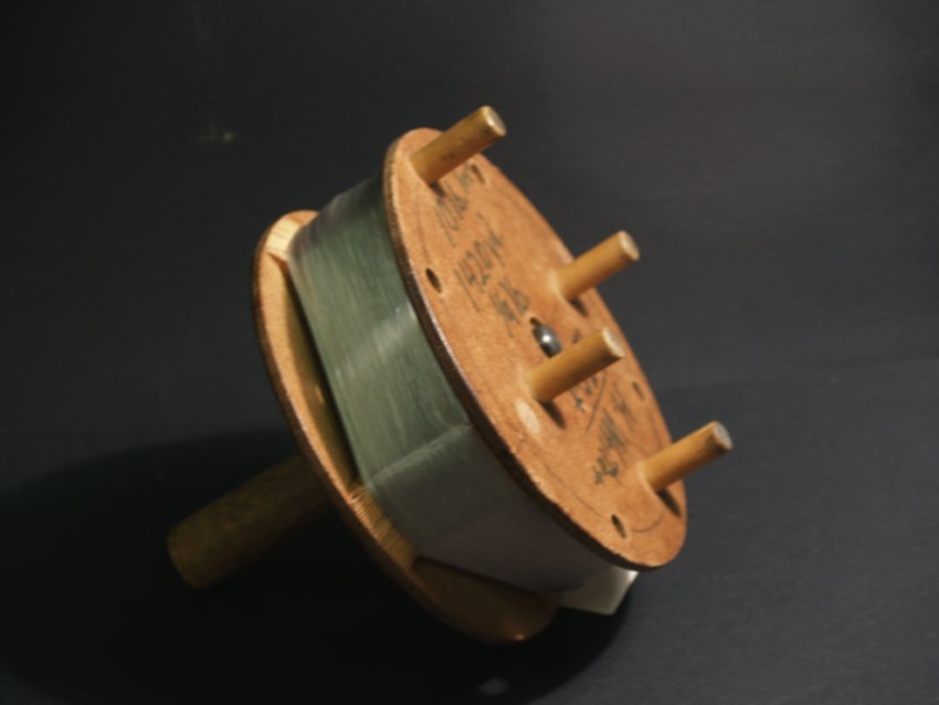 Contemporary handmade spool winder. Wood, metal. Made by Harold Writer in the 1980s (USA)
