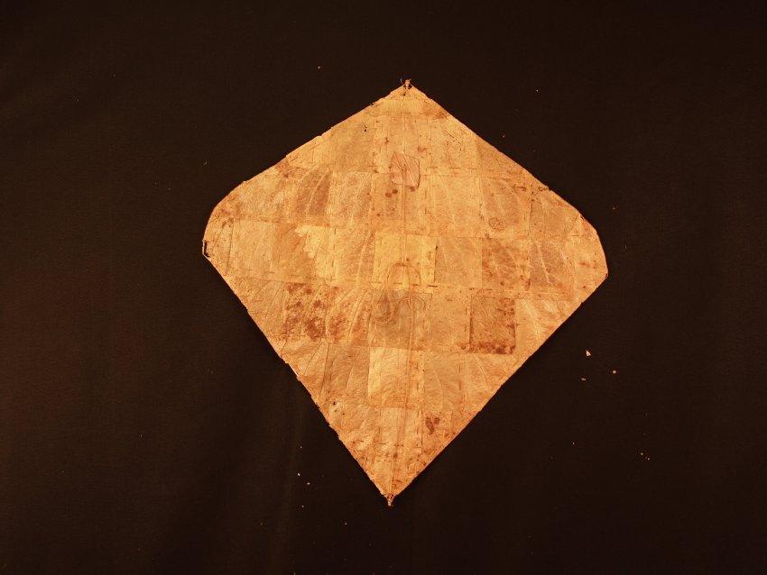 Indonesian leaf kite . Single line. Hand-sewn leaves, bamboo, handmade line. (Sulawesi, Indonesia)