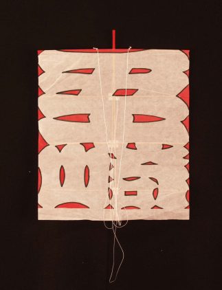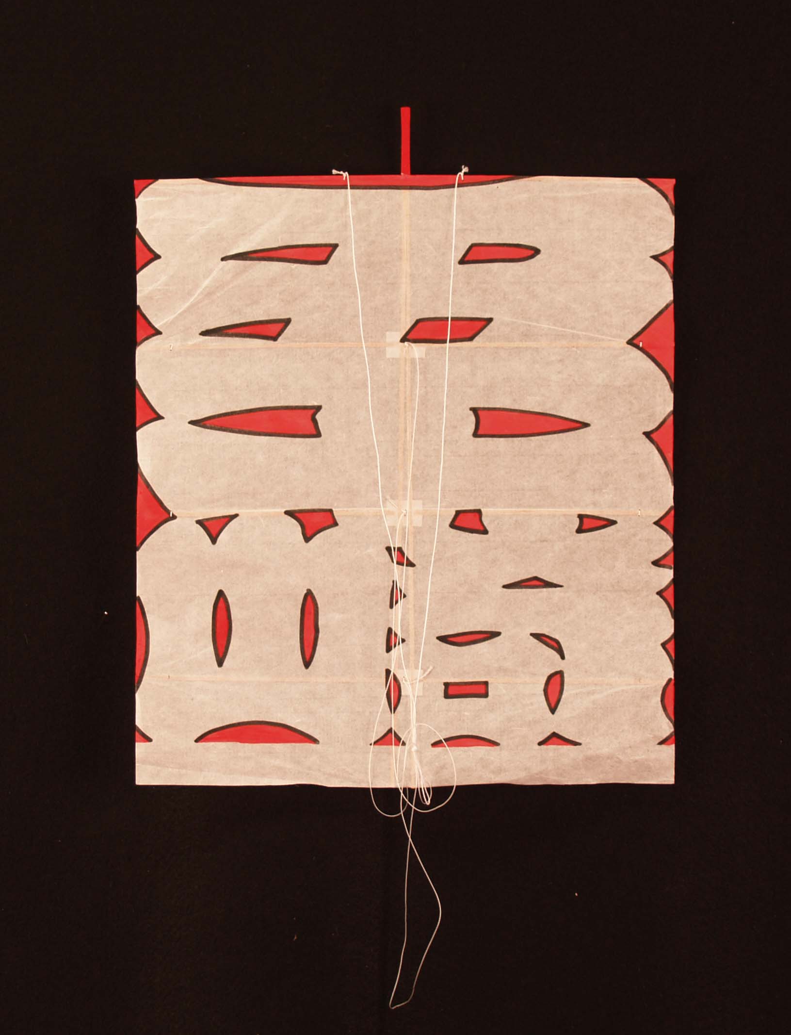 Japanese Ikazaki tako (fighter kite). Single line. Hand painted paper and bamboo. Red, black, white. (Japan)