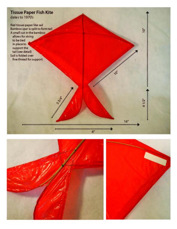 Not sure where this design originates, but it is from Southeast Asia. Red tissue-paper like sail, bamboo spar is split to form tail. A small cut in the bamboo