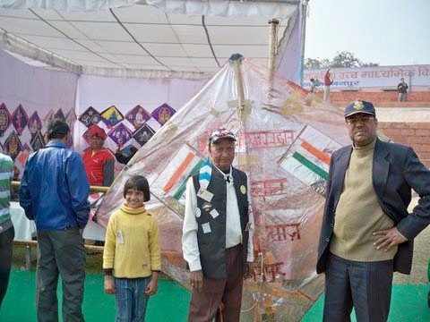 ABOVE: Indian kite maker Babu Khan at Chaugan Stadium. BELOW: A kite from the Babu Khan Collection. Khan kites are constructed of intricate tissue paper applique.