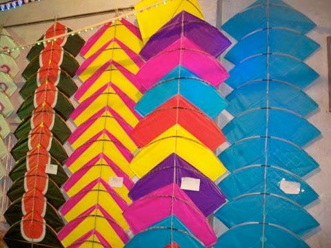 ABOVE: Patang fighter kites displayed in one of the shops.
