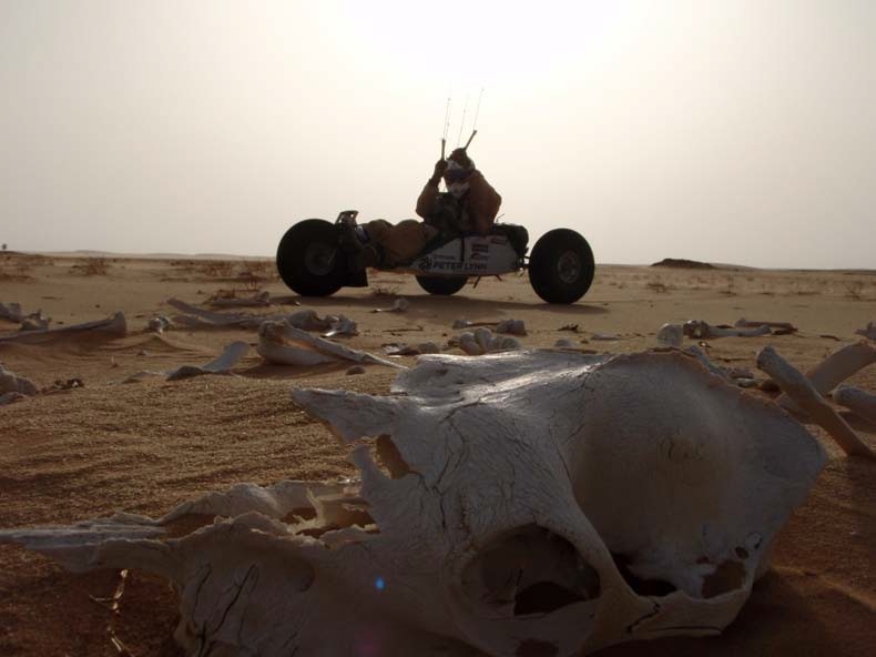 Enter Australian Geoff Wilson, veterinarian and adventurer, obsessed with all things wind-driven. Hearing of Craig’s interests and goals, he got on the blower. “He said to me, ‘Hey listen, have you ever thought about crossing a desert?’ I had the redundant plan in my draw. I pulled it out, put it on my desk, and said, ‘Yes, of course.’”