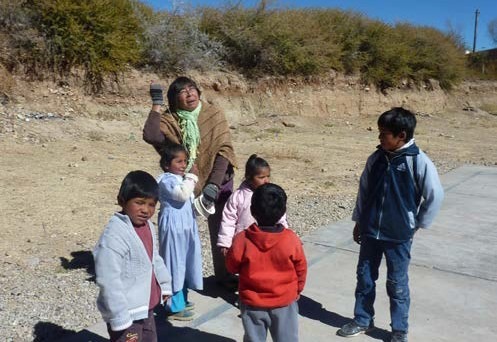 Besides the typical adobe Andean dwellings, there is a small chapel, Nuestra Señora de Luján, and close by, Escuela de Frontera Nro. 2 Rosario Wayra. A welcome sign, which also offered tour- ist information, encouraged us to enter the prem- ises and introduce ourselves.