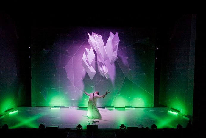 Kite Related Design. Robertshaw created structural and translucent set pieces for New York City music group Antony and the Johnsons. An illuminated crystal floats in the air as a focal point. Shown here at the 2009 Manchester International Festival.
