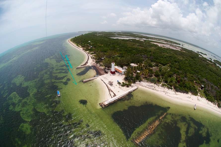 However, in the near shore waters of Holbox Island, strong enough wind conditions were found to elevate the Nikon D90 camera. So we decided to document with KAP the coastline of the northeastern side of the island, where a strong erosion process has been observed in the last 10 years.