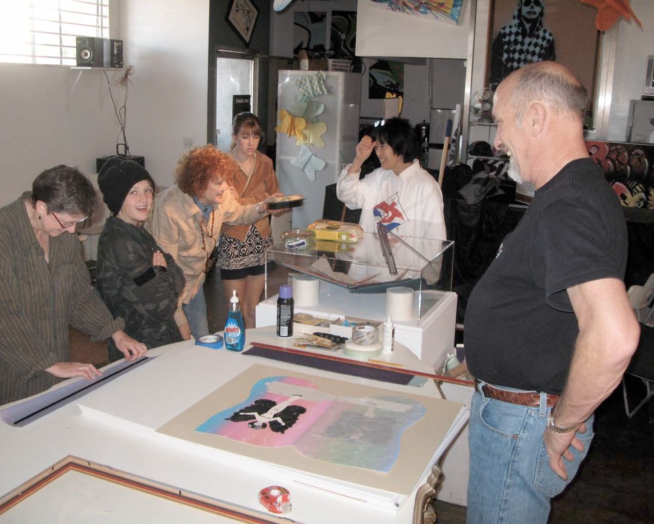 Drachen Foundation. …to kite, print, and paper making workshops (pictured here working with Gloria Stuart on an installation of her kite book, Flight of the Butterfly)…
