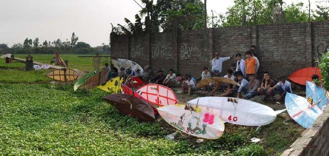 Figure 78 Not all kites flew well. This one crashed into the village pond
