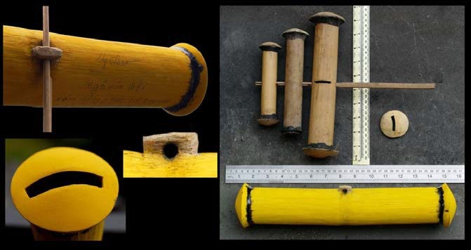 The inner flutes of the Friendship Flute made by Mr Nguyễn Hữu Kiêm are very similar to the Kalimantan flute but we know that he was influenced by previous sight of the Kalimantan flute on Uli’s website “Windmusik”. The steel engraving is clearly diagrammatic and does not show how this single mouthed flute is mounted on the kite. While we can speculate on possibilities, this aspect remains a dilemma for further investigation.