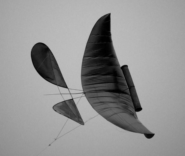 The winds were very low which made launching very difficult as the line handlers could not run due to the soft and soaked ground. They had to haul in the kites by hand. This resulted in unstable starts and kites diving, tumbling and being caught in tangles. When the kites were airborne and at a reasonable height (100 metres) the low winds also caused trouble as some kites exhibited pitch rocking followed by, sometimes immediately, nose down tumbling. We thought, and this was confirmed later, that this was because the flutes were mounted too far whilst not being waterproofed, are the most valued part of the assembly and consequently received the most attention. When the kites were high they found better winds and at one time there were about 15 kites (out of the fleet of nearly 50) flying high and smoothly.