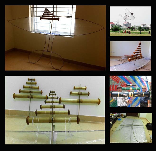 - Dieu Canh Phan – the plank-bed kite. This is essentially the same kite as the Dieu Chu Thap kite with paper tails.