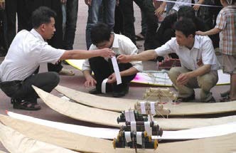 The reason for some of the failures was explained by the young fliers, mostly by hand gestures, as the result of weak wing spars or wing tips that bent up too high and which resulted in excessive dihedral. In other cases the flute assemblies were mounted too far forward and contributed to the kite instabilities, usually resulting in tumbling.