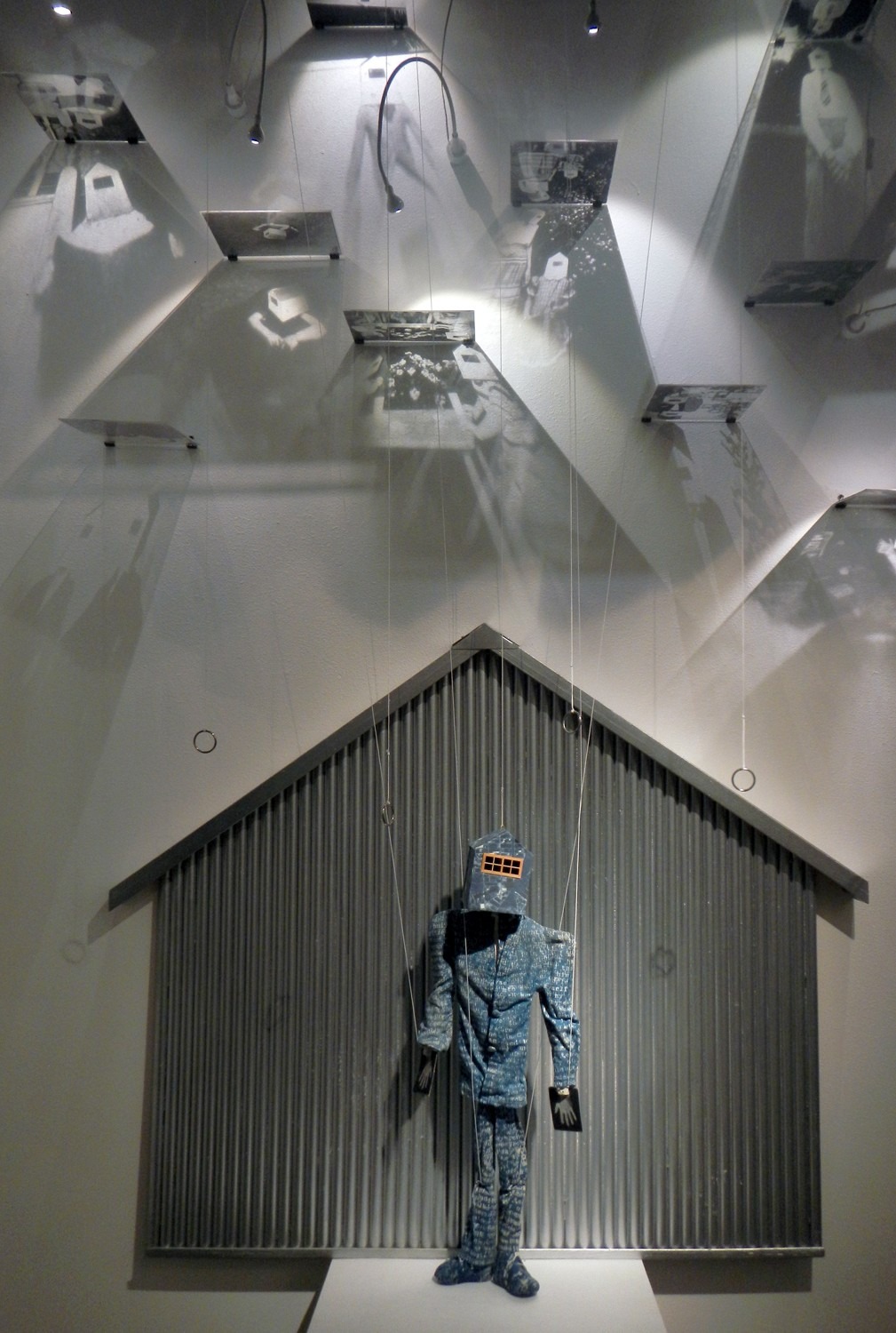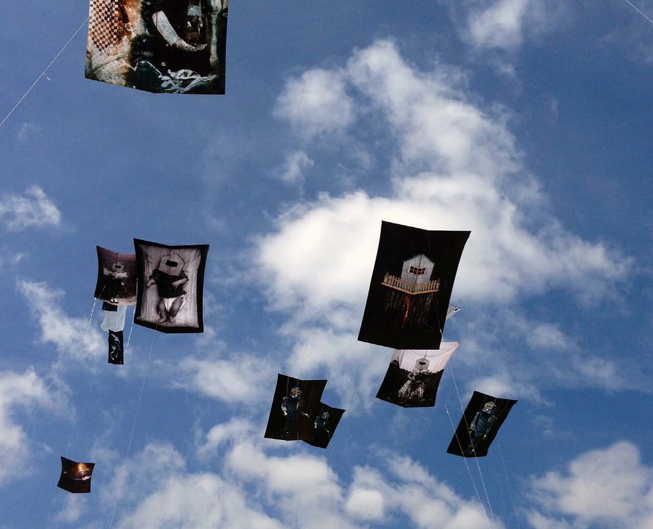 The series consists of two complementary forms: a suite of photographs and a range of installation components including shadows, kites, puppets, quilts, and images printed on sheer silk.
