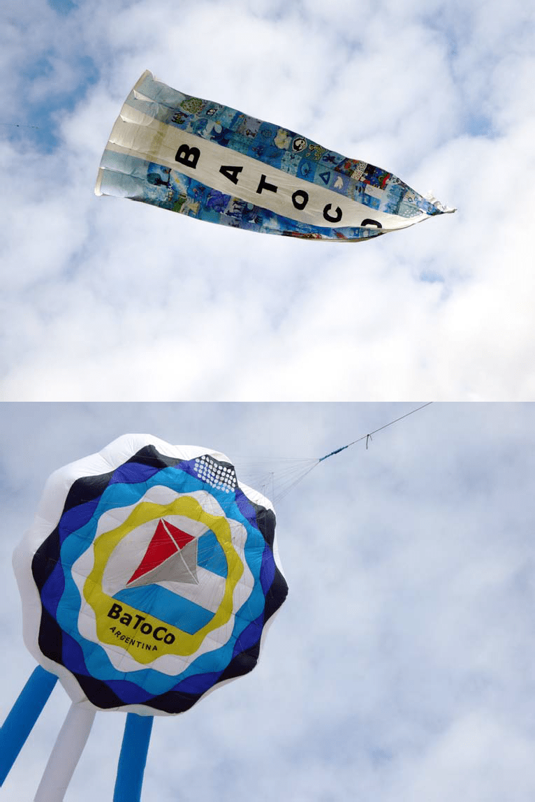 The great achievement of the project was to bring together all its members on a shared activity demanding effort, enthusiasm, and creativity. This project was noteworthy because many sectors of the community were involved on the design of the panels which, when combined, formed a huge Argentinian flag. BaToCo members, individual artists, schools, hospitals, community institutions – all worked hard to make each section of this giant kite.