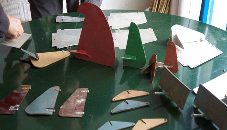 boTTom: Garber target kite rudders on display. No written explantion has been found to explain the sizes and different applications.