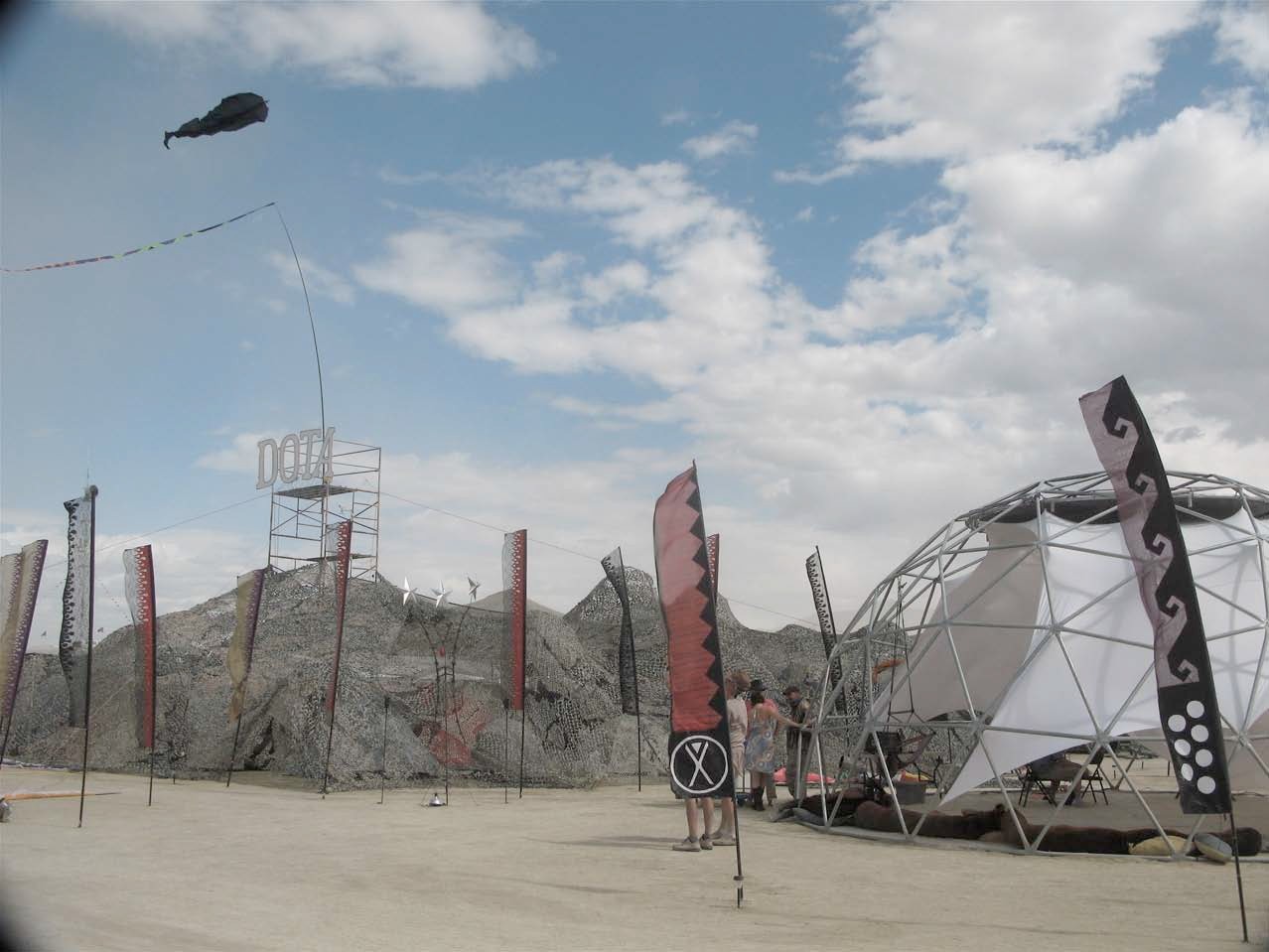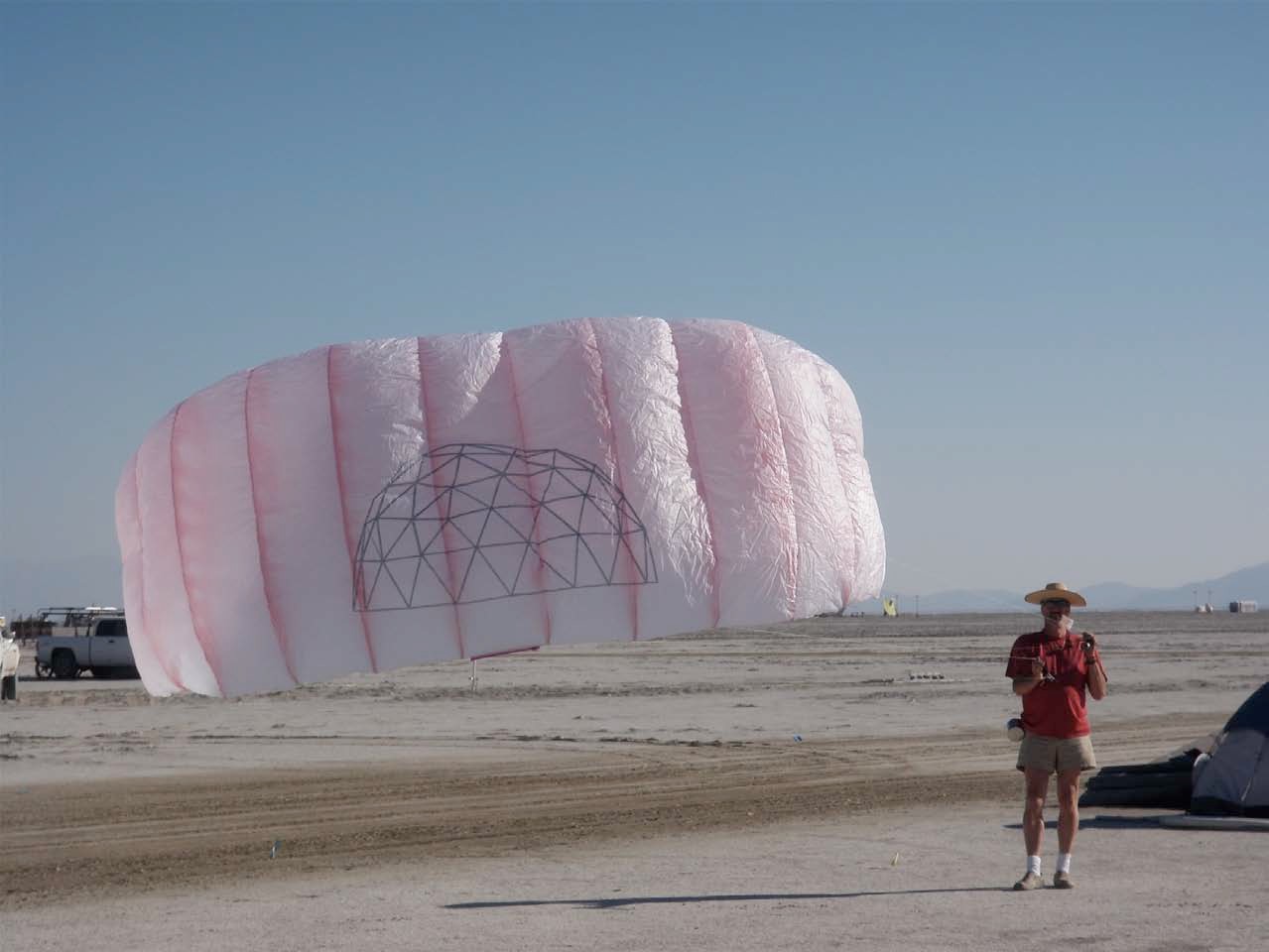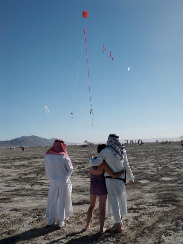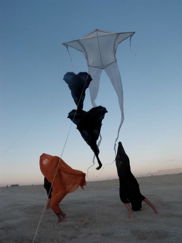 Burning Man is annual arts festival and alternative community gathering held in Nevada’s Black Rock Desert. Drachen board president Scott Skinner calls the event “a great audience for kites.” Read about Scott and Jose’s trip, photo-documented here, on the Drachen blog: http://www.drachen.org/kite_wanderings_older.html