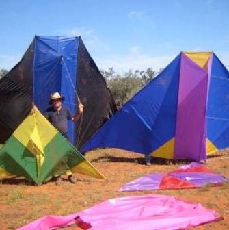 Bob Moore, a 58 – year- old health professional from Sydney, Australia, recently made a sixth series of attempts to reset the record. Along with three fellow Australian Kite Society members, Bob has managed over 25 high altitude flights from a disused airstrip at Cable Downs, a 50,000 acre sheep station near Cobar in western New South Wales, Australia. The most recent series of flights in September 2011 saw a big Dunton-Taylor delta soar to 14,121 feet above ground level, just 388 feet from the claimed Synergy record.
