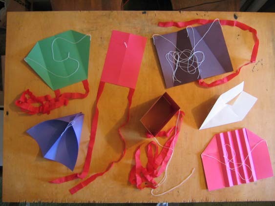 Here are some kites that are quick and easy to build and fly, made from readily available, inexpensive materials. No sticks are used. They are stiffened by creases in the paper. These kites are good for classrooms, homeschoolers, scouts, senior crafts, church groups, or parties. I picked these three to show you from 42 kites that I made for this project.