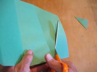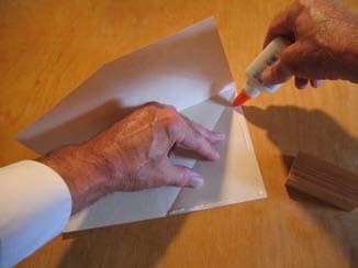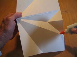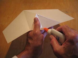 11. Apply glue to the two edges of the fin triangle opposite the center fold.