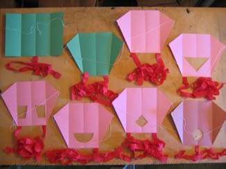 1. Many kites require tails. It is good to make them up in bulk and have a box of them handy. For this set of kites, you will need at least two tails.