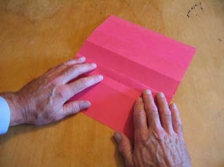 4. Turn the paper over, bring the edges of each center panel together, and crease the paper.