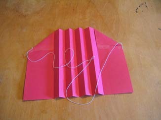 13. Press the tape down to make sure it sticks tightly to the paper and string. Attach the other end of the string to the opposite side in the same way.