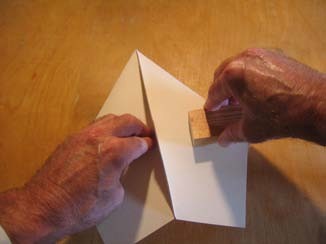 6. Sharpen the creases by rubbing them with a block of wood, but do not press hard enough to curl the paper.