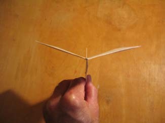 12. Apply glue to one side of the fuselage where the wing roots will come together and to the other side beside the fin.