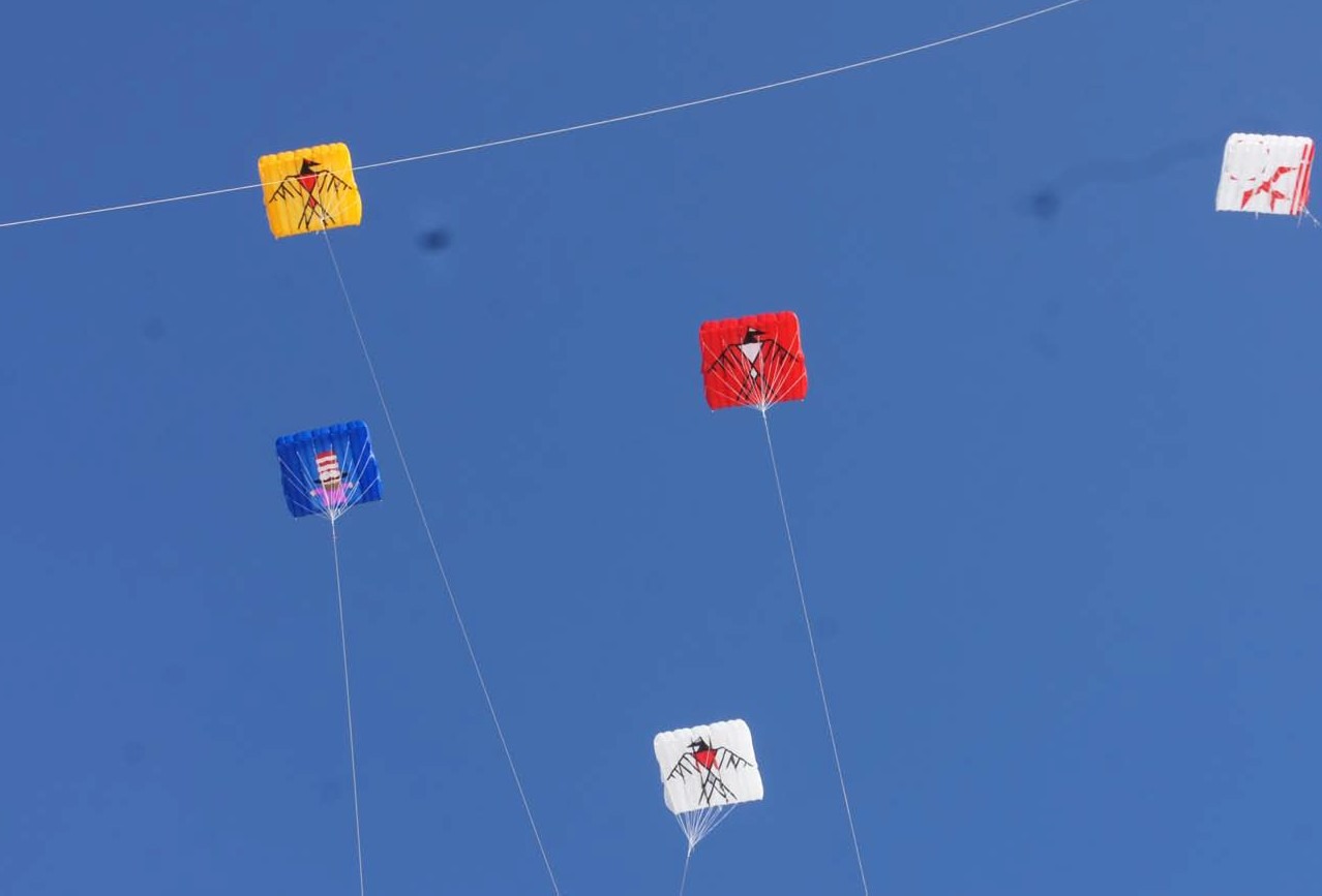 Original founders and organizers Wolfgang Schimmelpfennig and Rainer Kregovsky, along with fellow kitemaker Til Krapp, have attended all 30 of the Meetings. Rainer has celebrated milestone birthday numbers 50, 60, and 70 on the island with kite friends, while Wolfgang has unveiled new creations throughout the Meeting’s history (including Big Boss, Snakey Jak, and now a new power-lifter).