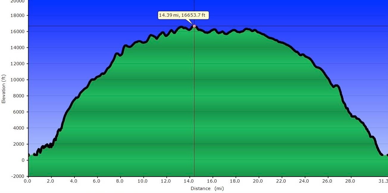 We had run out of line with only about 200 meters left on the reel and 12,620 meters up in the sky. We waited for an hour, in which time the kite gradually rose to a maximum of 16,038 feet above the launch point, and the tension gauge was hovering between 110 and 120 pounds. It was porpoising for half an hour when we decided that 16,000 feet was high enough. We may have been able to go higher with more line, but we were happy with what we had achieved.