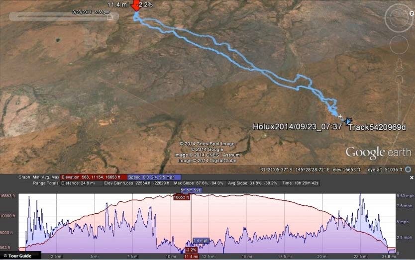 On Monday, September 22nd, 2014, we made our first altitude record attempt since late September 2012. I arrived late on Saturday, September 21st, a day before my teammates who arrived late on Sunday. I had done most of the preliminary set up, but on Monday the 22nd it took another two hours to ready the kite, line, and other paraphernalia that make up our base station and recording equipment. Setting up the flight must be meticulous. One error can see the kite drifting off, never to be seen again, or the GPS telemetry not recording the flight.